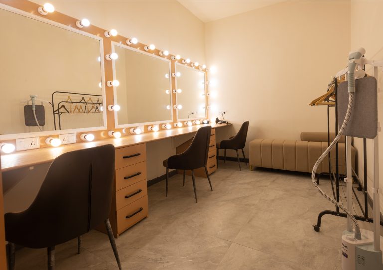 We provide a dedicated makeup area with adjustable lighting that mimics natural light perfect for flawless application and quick changes.