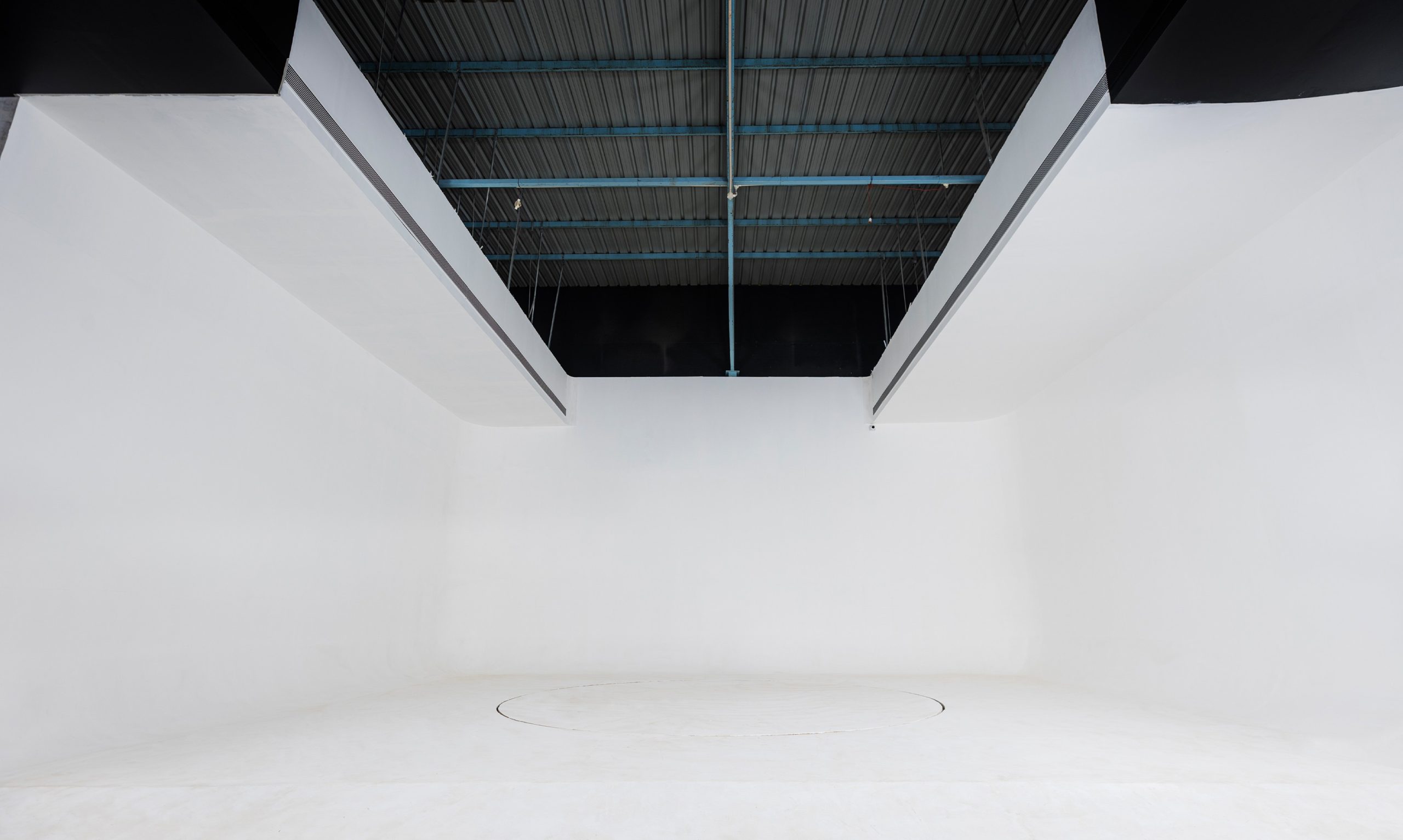 A seamless, all-white cyclorama wall equipped with a motorized turntable — perfect for car shoots, fashion reels, product rotations, and more.