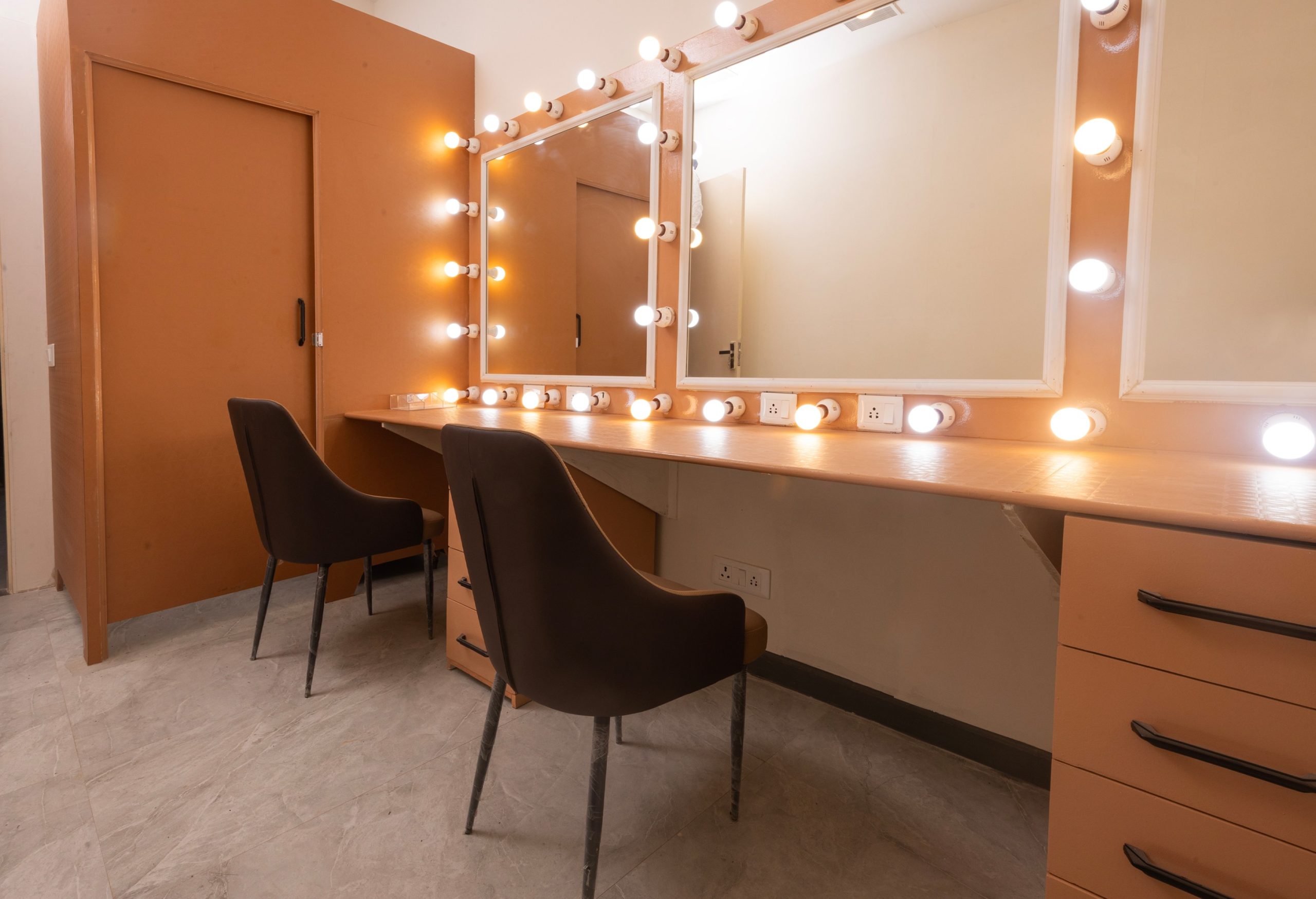 We provide a dedicated makeup area with adjustable lighting that mimics natural light perfect for flawless application and quick changes.